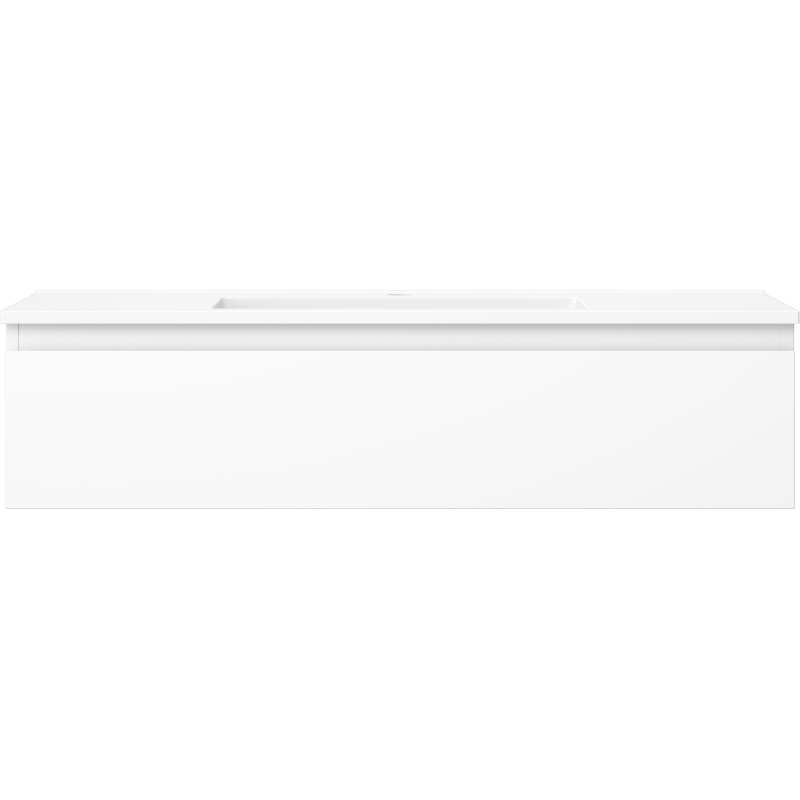 Špecifikácia produktu: Rozmery skrinky: Šírka: 100 cm Hĺbka: 46 cm Výška: 23,5 cm Farba korpusu: Matná biela Materiál korpusu: Lakovaná doska Farba čela: Matná biela Materiál čela: Lakovaná MDF doska Štruktúra čela: Hladká Počet zásuviek: Povrch odolný voči UV žiareniu Rozmery umývadla: Šírka: 101 cm Hĺbka: 46,5 cm Výška: 16,5 cm Farba umývadla: Matná biela Materiál umývadla: Konglomerát Otvor pre prepad: Áno Otvor pre batériu: Áno Zmontovaný výrobok