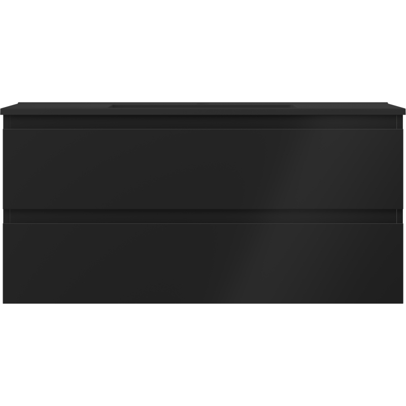 Špecifikácia produktu: Rozmery skrinky: Šírka: 100 cm Hĺbka: 46 cm Výška: 47 cm Farba korpusu: Matná čierna Materiál korpusu: Lakovaná doska Farba čela: Matná čierna Materiál čela: Lakovaná MDF doska Štruktúra čela: Hladká Počet zásuviek: 2 Priestorná žiarenia Rozmery umývadla: Šírka: 101 cm Hĺbka: 46,5 cm Výška: 16,5 cm Farba umývadla: Matná čierna Materiál umývadla: Konglomerát Otvor pre prepad: Áno Otvor pre batériu: Áno Zmontovaný výrobok