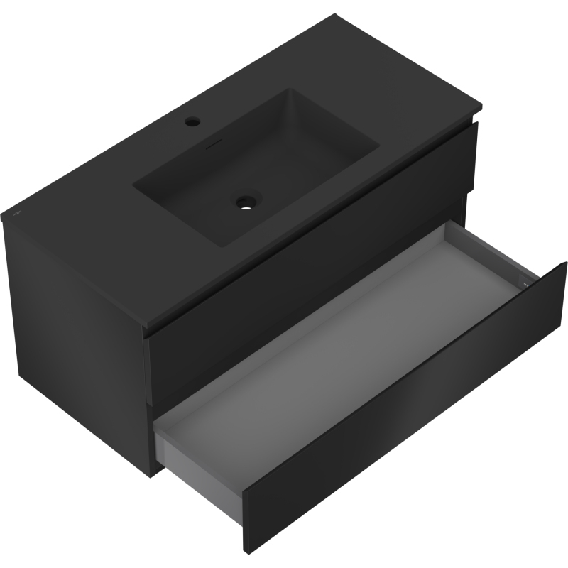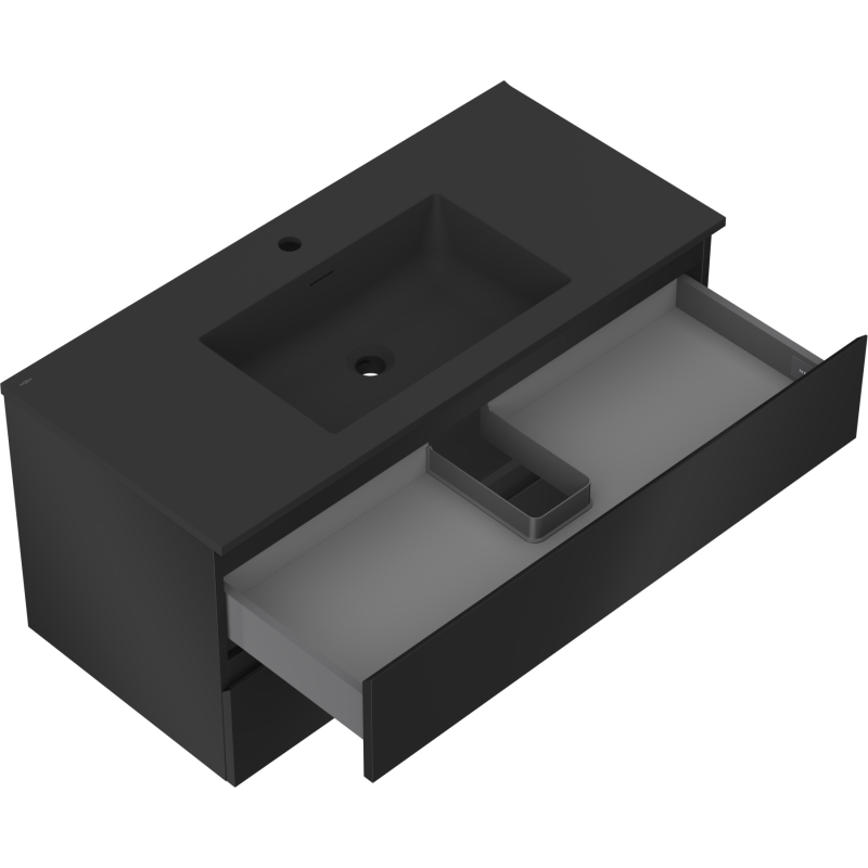 Kúpeľňová skrinka Mexen Orio 100 cm s umývadlom Otis, 2 zásuvky, matná čierna - 91A10-10047-2-BFF71-W18M71