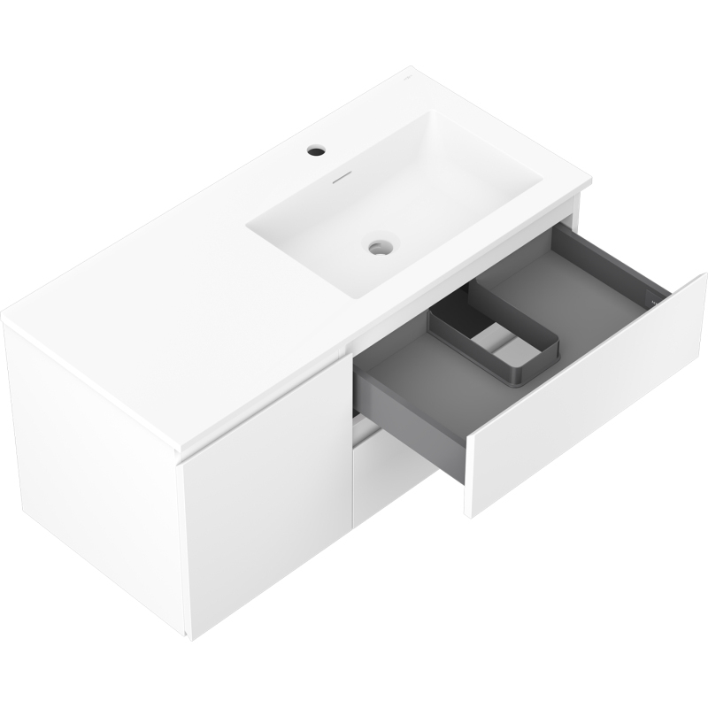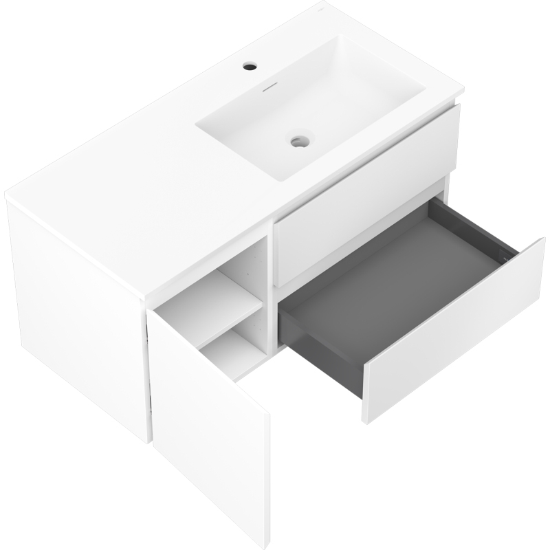 Kúpeľňová skrinka Mexen Orio 100 cm s umývadlom Otis pravé, 2S, 1D, matná biela - 91A13-10047-3-BBFFF01-W18P01
