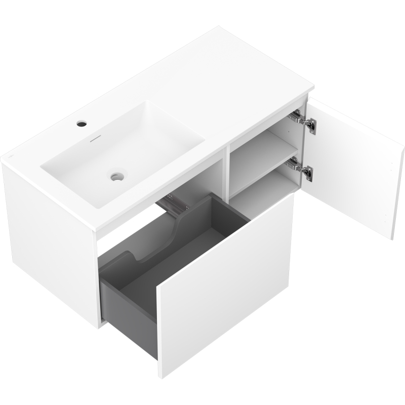 Kúpeľňová skrinka Mexen Orio 100 cm s umývadlom Otis vľavo, 1S, 1D, matná biela - 91A13-10047-3-BBFF01-W18L01