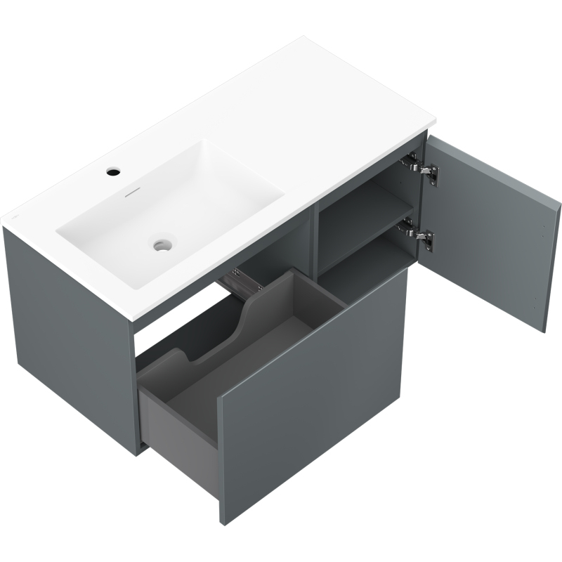Kúpeľňová skrinka Mexen Orio 100 cm s umývadlom Otis vľavo, 1S, 1D, matný grafit/matná biela - 91A13-10047-3-BBFF66-W18L01