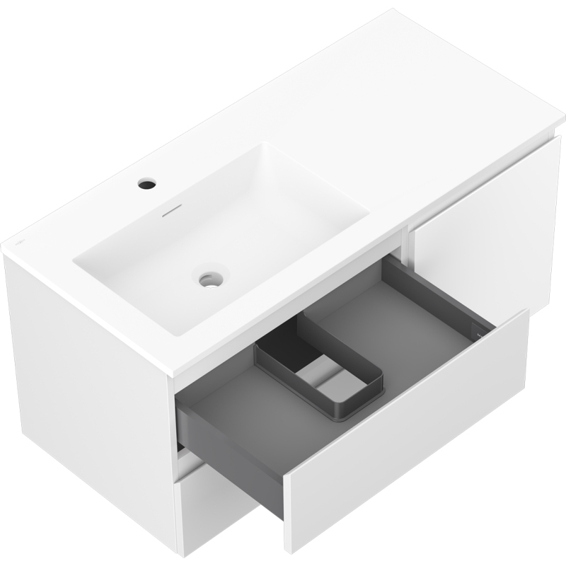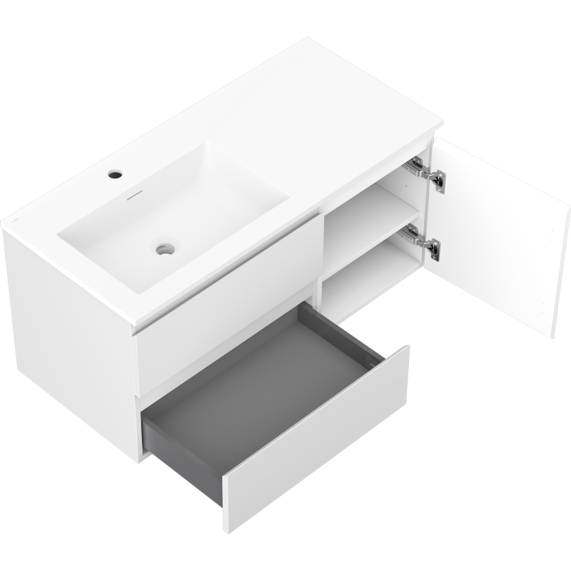 Kúpeľňová skrinka Mexen Orio 100 cm s umývadlom Otis vľavo, 2S, 1D, matná biela - 91A13-10047-3-BBFFF01-W18L01
