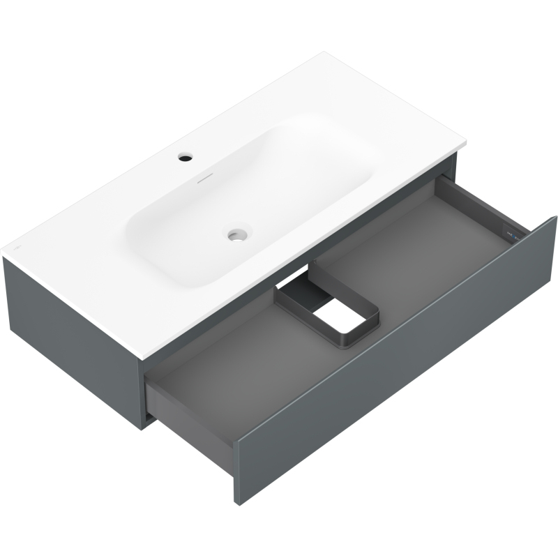 Kúpeľňová skrinka Mexen Orio 100 cm s umývadlom Vela, 1 zásuvka, matný grafit/matná biela - 91A10-10023-1-BF66-W23M01