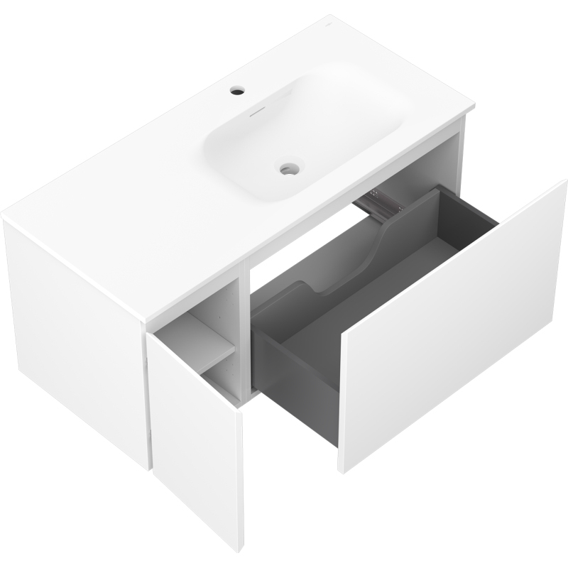 Kúpeľňová skrinka Mexen Orio 100 cm s umývadlom Vela pravá, 1S, 1D, matná biela - 91A13-10047-3-BBFF01-W23P01