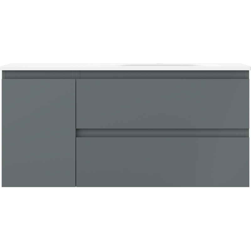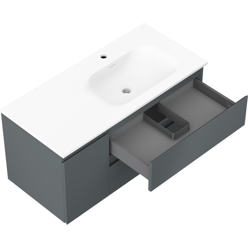Špecifikácia produktu: Rozmery skrinky: Šírka: 100 cm Hĺbka: 46 cm Výška: 47 cm Sada obsahuje: Zásuvková skrinka pod umývadlo: Šírka: 60 cm Hĺbka: 46 cm Výška: 47 cm Farba korpusu: Matný grafit Materiál korpus čela: Lakovaná MDF doska Štruktúra čela: Hladká Počet zásuviek: 2 Priestranná zásuvka s funkciou tlmeného dovierania Umývadlová skrinka s dvierkami: Šírka: 40 cm Výška: 47 cm Hĺbka: 46 cm Farba korpusu: Matný grafit Materiál korpus čela: Lakovaná MDF doska Štruktúra čela: Hladká Počet dvierok: 1 1 polica Pánty s funkciou tlmeného dovierania Univerzálna montáž dvierok (ľavé/pravé) UV odolný povrch Umývadlo: Šírka: 101 cm Hĺbka: 46,5 cm Výška: 16,5 cm Výška: 16,5 cm Konglomerát Otvor na prepad: Áno Otvor na batériu: Áno Zmontovaný výrobok