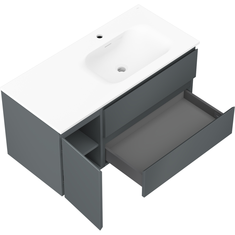 Kúpeľňová skrinka Mexen Orio 100 cm s umývadlom Vela pravá, 2S, 1D, grafit matný/biela matná - 91A13-10047-3-BBFFF66-W23P01