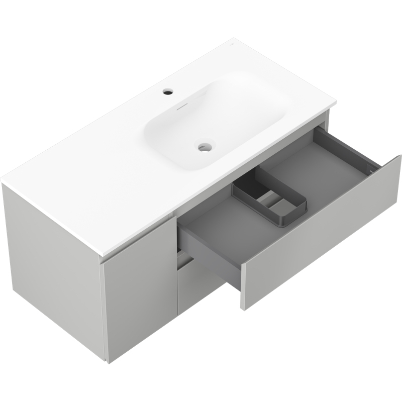 Kúpeľňová skrinka Mexen Orio 100 cm s umývadlom Vela pravá, 2S, 1D, matná šedá/matná biela - 91A13-10047-3-BBFFF62-W23P01
