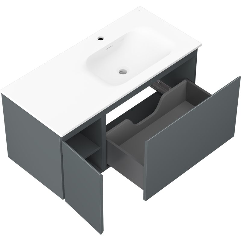 Kúpeľňová skrinka Mexen Orio 100 cm s umývadlom Vela pravé, 1S, 1D, grafit matný/biela matná - 91A13-10047-3-BBFF66-W23P01