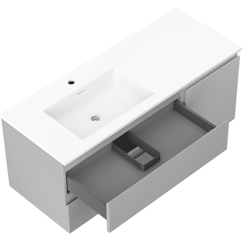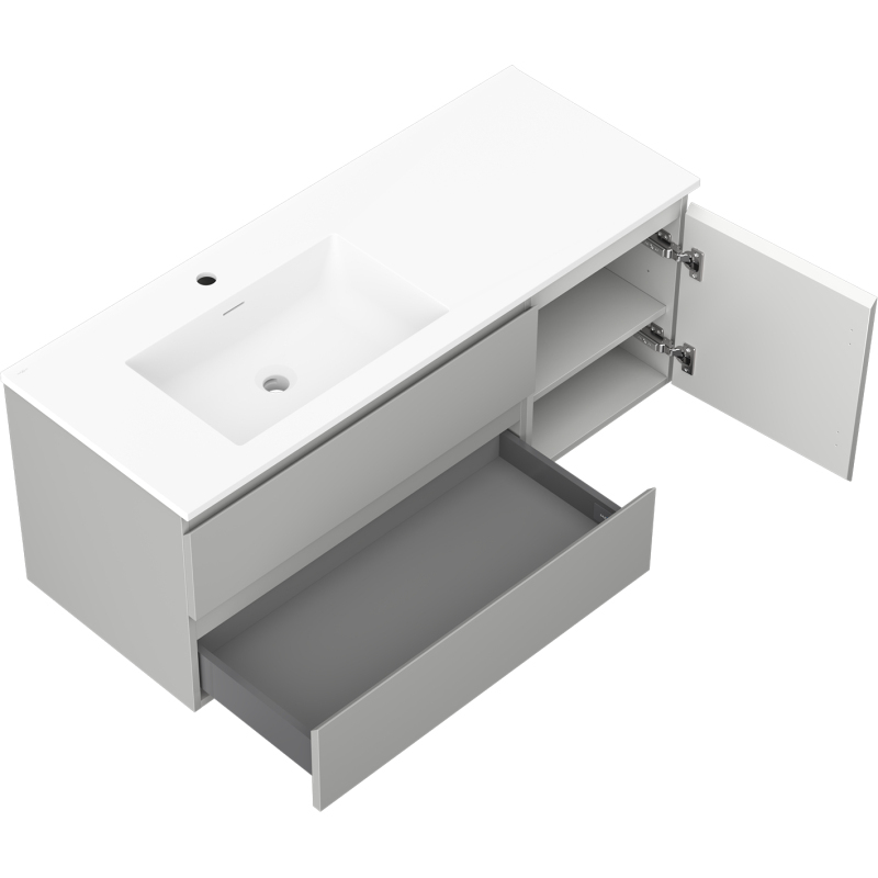 Kúpeľňová skrinka Mexen Orio 120 cm s umývadlom Otis ľavým, 2S, 1D, matná šedá/matná biela - 91A13-12047-3-BBFFF62-W18L01