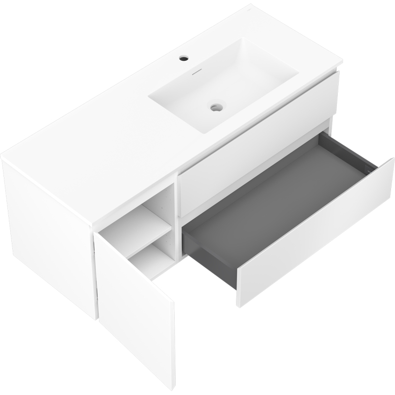 Kúpeľňová skrinka Mexen Orio 120 cm s umývadlom Otis pravá, 2S, 1D, matná biela - 91A13-12047-3-BBFFF01-W18P01