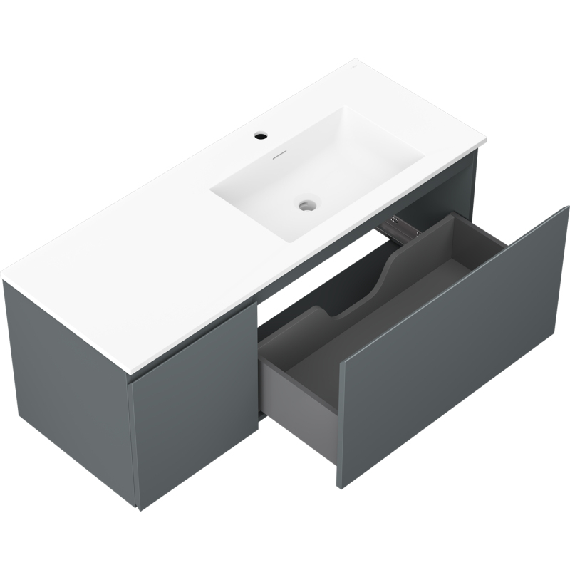 Kúpeľňová skrinka Mexen Orio 120 cm s umývadlom Otis pravé, 1S, 1D, matný grafit/matná biela - 91A13-12047-3-BBFF66-W18P01