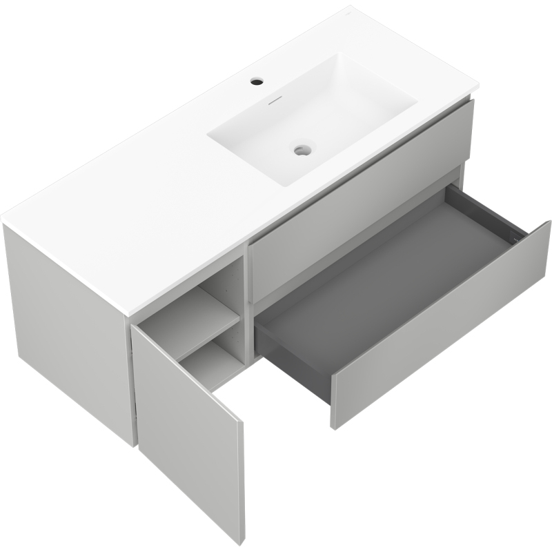 Kúpeľňová skrinka Mexen Orio 120 cm s umývadlom Otis pravé, 2S, 1D, matná šedá/matná biela - 91A13-12047-3-BBFFF62-W18P01