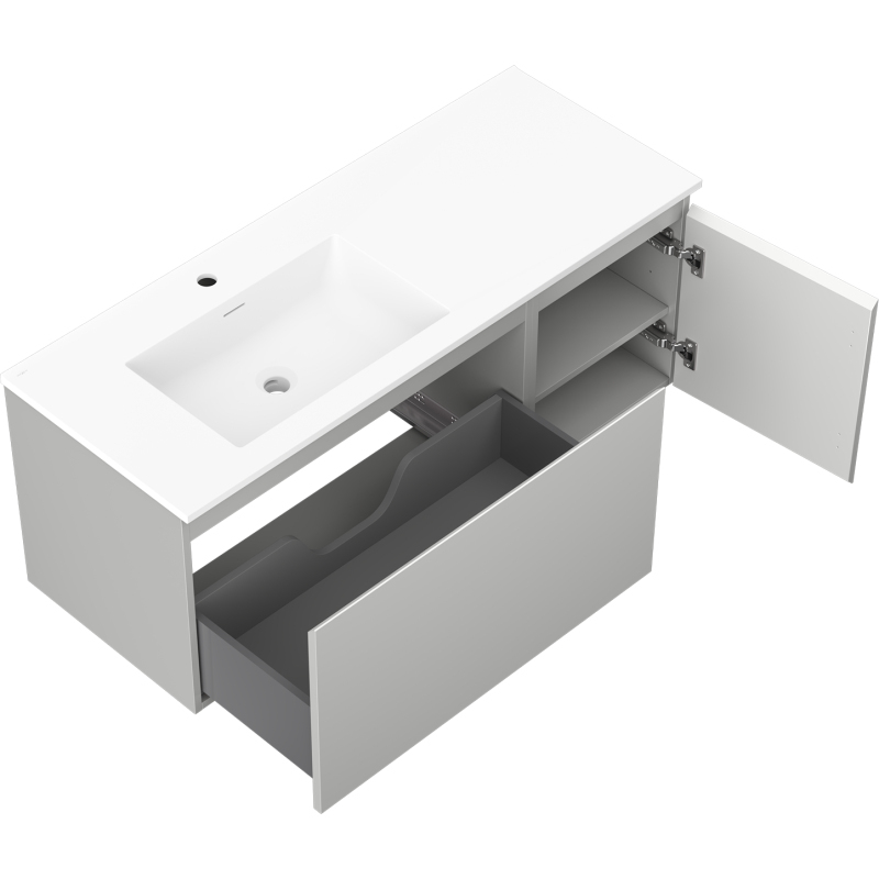Kúpeľňová skrinka Mexen Orio 120 cm s umývadlom Otis vľavo, 1S, 1D, matná šedá/matná biela - 91A13-12047-3-BBFF62-W18L01