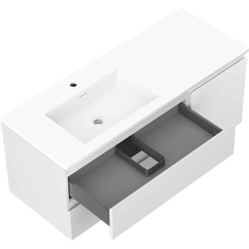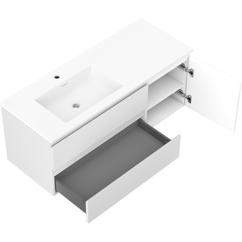 Kúpeľňová skrinka Mexen Orio 120 cm s umývadlom Otis vľavo, 2S, 1D, matná biela - 91A13-12047-3-BBFFF01-W18L01
