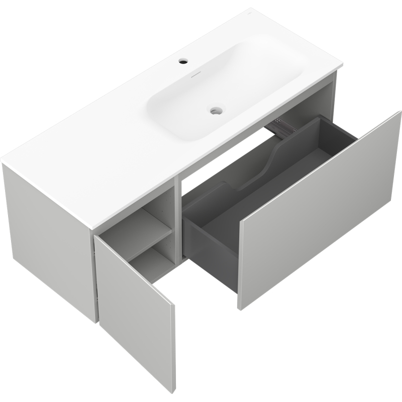 Kúpeľňová skrinka Mexen Orio 120 cm s umývadlom Vela pravá, 1S, 1D, matná šedá/matná biela - 91A13-12047-3-BBFF62-W23P01