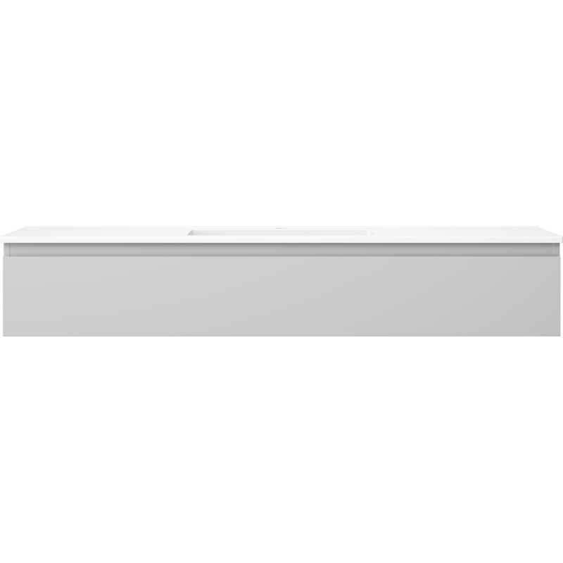 Špecifikácia produktu: Rozmery skrinky: Šírka: 140 cm Hĺbka: 46 cm Výška: 23,5 cm Farba korpusu: Matne šedá Materiál korpusu: Lakovaná doska Farba čela: Matne šedá Materiál čela: Lakovaná MDF doska Štruktúra čela: Hladká Počet zásuviek: 1 voči UV žiareniu Rozmery umývadla: Šírka: 141 cm Hĺbka: 46,5 cm Výška: 16,5 cm Farba umývadla: Matne biela Materiál umývadla: Konglomerát Otvor pre prepad: Áno Otvor pre batériu: Áno Zmontovaný výrobok