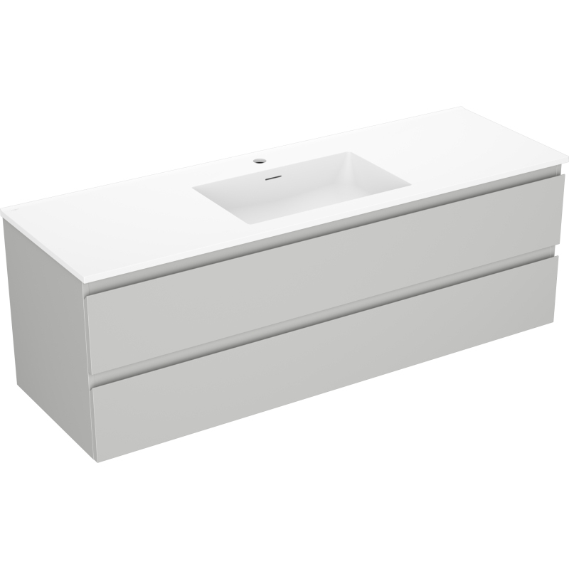 Špecifikácia produktu: Rozmery skrinky: Šírka: 140 cm Hĺbka: 46 cm Výška: 47 cm Farba korpusu: Matne šedá Materiál korpusu: Lakovaná doska Farba čela: Matne šedá Materiál čela: Lakovaná MDF doska Štruktúra čela: Hladká Počet zásuviek: 2 Pros UV žiarenie Rozmery umývadla: Šírka: 141 cm Hĺbka: 46,5 cm Výška: 16,5 cm Farba umývadla: Matne biela Materiál umývadla: Konglomerát Otvor na prepad: Áno Otvor na batériu: Áno Zmontovaný výrobok