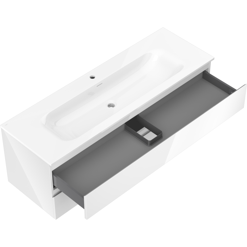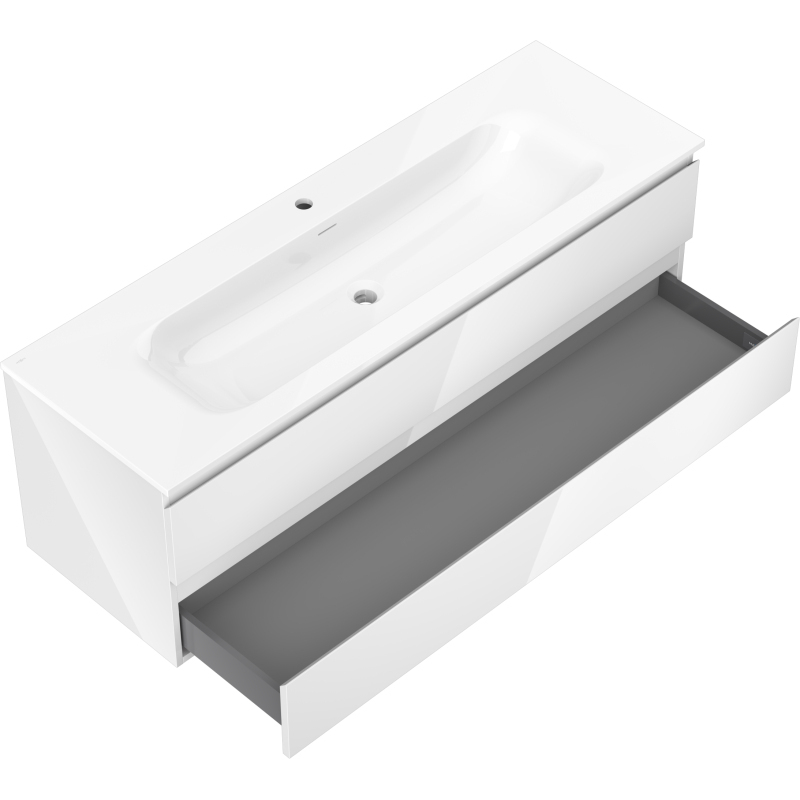 Kúpeľňová skrinka Mexen Orio 140 cm s umývadlom Vela, 2 zásuvky, lesklá biela - 91A10-14047-2-BFF00-W23M00