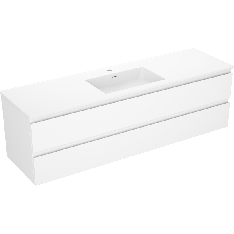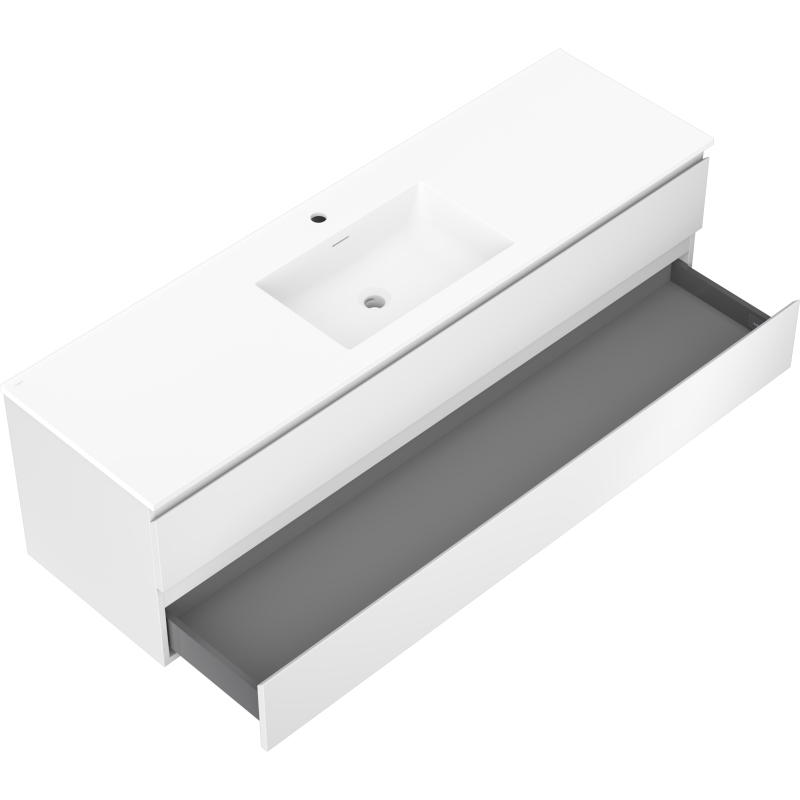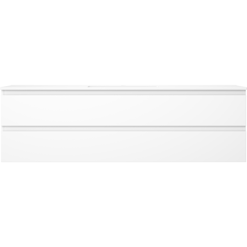 Špecifikácia produktu: Rozmery skrinky: Šírka: 160 cm Hĺbka: 46 cm Výška: 47 cm Farba korpusu: Matná biela Materiál korpusu: Lakovaná doska Farba čela: Matná biela Materiál čela: Lakovaná MDF doska Štruktúra čela: Hladká Počet zásuviek: 2 odolný voči UV žiareniu Rozmery umývadla: Šírka: 161 cm Hĺbka: 46,5 cm Výška: 16,5 cm Farba umývadla: Matná biela Materiál umývadla: Konglomerát Otvor pre prepad: Áno Otvor pre batériu: Áno Zmontovaný výrobok