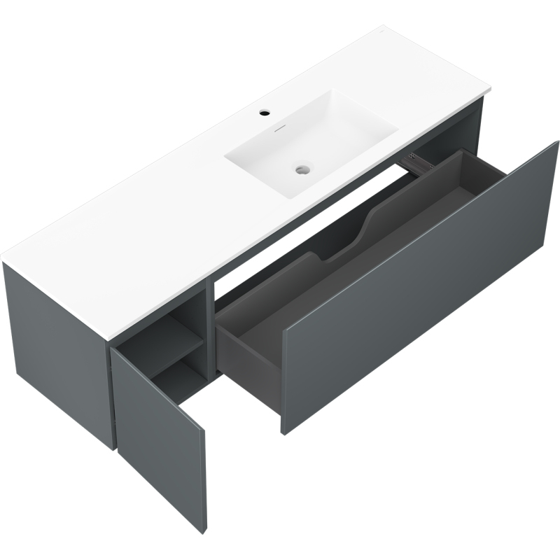 Kúpeľňová skrinka Mexen Orio 160 cm s umývadlom Otis pravé, 1S, 1D, matný grafit/matná biela - 91A13-16047-3-BBFF66-W18P01