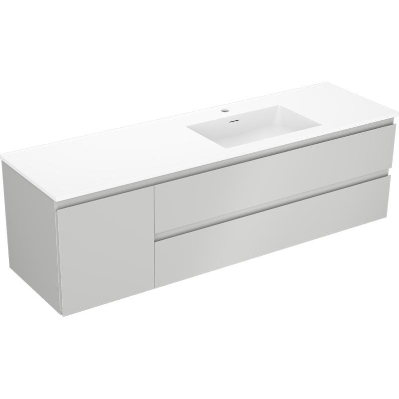 Kúpeľňová skrinka Mexen Orio 160 cm s umývadlom Otis pravé, 2S, 1D, matná šedá/matná biela - 91A13-16047-3-BBFFF62-W18P01