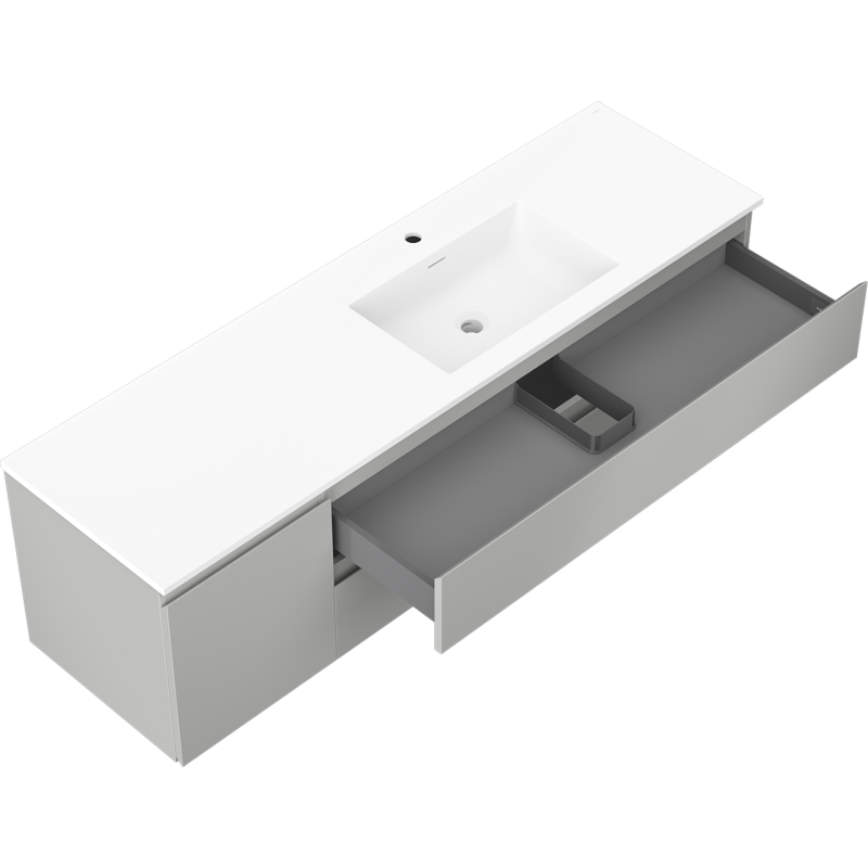 Špecifikácia produktu: Rozmery skrinky: Šírka: 160 cm Hĺbka: 46 cm Výška: 47 cm Sada obsahuje: Zásuvková skrinka pod umývadlo: Šírka: 120 cm Hĺbka: 46 cm Výška: 47 cm Farba korpusu: Matne šedá Materiál korpus čela: Lakovaná MDF doska Konštrukcia čela: Hladká Počet zásuviek: 2 Priestranná zásuvka s funkciou tlmeného dovierania Umývadlová skrinka s dvierkami: Šírka: 40 cm Výška: 47 cm Hĺbka: 46 cm Farba korpusu: Matne šedá Materiál korpusu čela: Lakovaná MDF doska Konštrukcia čela: Hladká Počet dvierok: 1 1 polica Pánty s funkciou tlmeného dovierania Univerzálna montáž dvierok (ľavé/pravé) Povrch odolný voči UV žiareniu Umývadlo: Šírka: 161 cm Hĺbka: 46,5 cm Výška: umývadlá: Konglomerát Otvor pre prepad: Áno Otvor pre batériu: Áno Výrobok zmontovaný