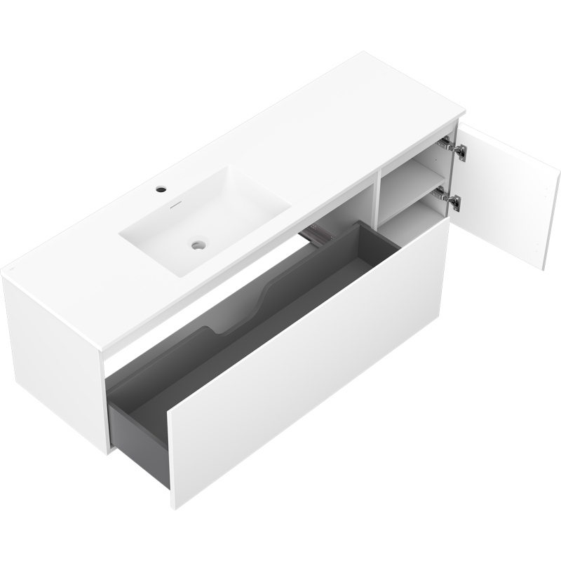 Kúpeľňová skrinka Mexen Orio 160 cm s umývadlom Otis vľavo, 1S, 1D, matná biela - 91A13-16047-3-BBFF01-W18L01