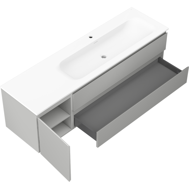 Kúpeľňová skrinka Mexen Orio 160 cm s umývadlom Vela pravá, 2S, 1D, matná šedá/matná biela - 91A13-16047-3-BBFFF62-W23P01