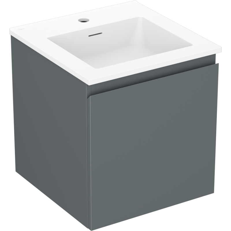 Špecifikácia produktu: Rozmery skrinky: Šírka: 45 cm Hĺbka: 46 cm Výška: 47 cm Farba korpusu: Matný grafit Materiál korpusu: Lakovaná doska Farba čela: Matný grafit Materiál čela: Lakovaná MDF doska Štruktúra čela: Hladká Počet zásuviek: 1 voči UV žiareniu Rozmery umývadla: Šírka: 46 cm Hĺbka: 46,5 cm Výška: 16,5 cm Farba umývadla: Matná biela Materiál umývadla: Konglomerát Otvor pre prepad: Áno Otvor pre batériu: Áno Zmontovaný výrobok