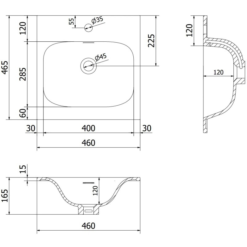 Špecifikácia produktu: Rozmery skrinky: Šírka: 45 cm Hĺbka: 46 cm Výška: 47 cm Farba korpusu: Matný grafit Materiál korpusu: Lakovaná doska Farba čela: Matný grafit Materiál čela: Lakovaná MDF doska Štruktúra čela: Hladká Počet zásuviek: 1 voči UV žiareniu Rozmery umývadla: Šírka: 46 cm Hĺbka: 46,5 cm Výška: 16,5 cm Farba umývadla: Matná biela Materiál umývadla: Konglomerát Otvor pre prepad: Áno Otvor pre batériu: Áno Zmontovaný výrobok