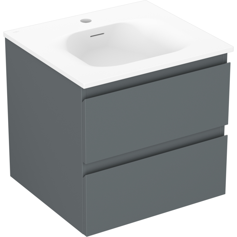 Špecifikácia produktu: Rozmery skrinky: Šírka: 50 cm Hĺbka: 46 cm Výška: 47 cm Farba korpusu: Matný grafit Materiál korpusu: Lakovaná doska Farba čela: Matný grafit Materiál čela: Lakovaná MDF doska Štruktúra čela: Hladká Počet zásuviek: 2 voči UV žiareniu Rozmery umývadla: Šírka: 51 cm Hĺbka: 46,5 cm Výška: 16,5 cm Farba umývadla: Matná biela Materiál umývadla: Konglomerát Otvor pre prepad: Áno Otvor pre batériu: Áno Zmontovaný výrobok
