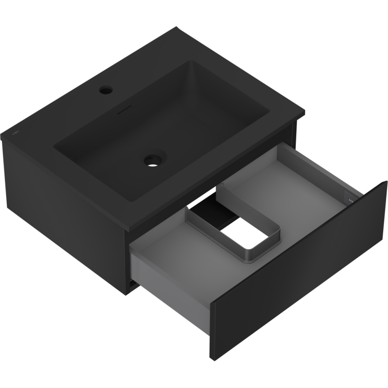 Kúpeľňová skrinka Mexen Orio 60 cm s umývadlom Otis, 1 zásuvka, matná čierna - 91A10-06023-1-BF71-W18M71