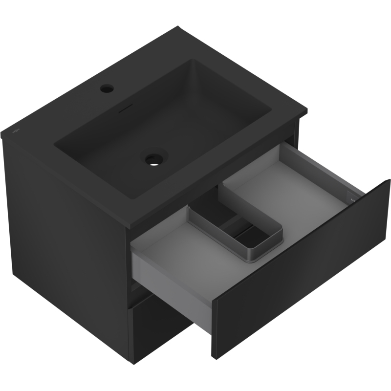Kúpeľňová skrinka Mexen Orio 60 cm s umývadlom Otis, 2 zásuvky, matná čierna - 91A10-06047-2-BFF71-W18M71