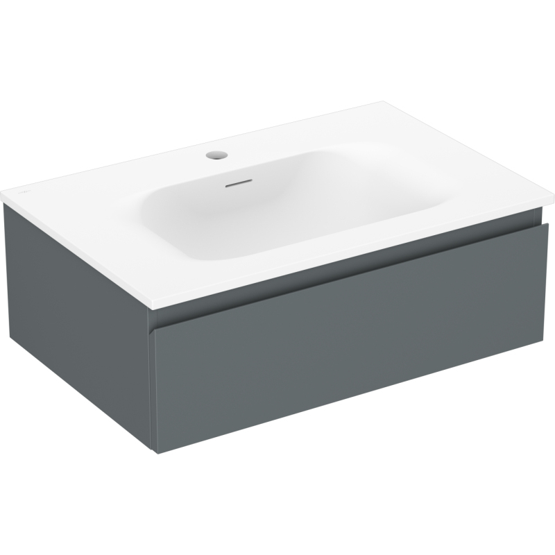 Špecifikácia produktu: Rozmery skrinky: Šírka: 70 cm Hĺbka: 46 cm Výška: 23,5 cm Farba korpusu: Matný grafit Materiál korpusu: Lakovaná doska Farba čela: Matný grafit Materiál čela: Lakovaná MDF doska Štruktúra čela: Hladká Počet zásuviek: odolný voči UV žiareniu Rozmery umývadla: Šírka: 71 cm Hĺbka: 46,5 cm Výška: 16,5 cm Farba umývadla: Matná biela Materiál umývadla: Konglomerát Otvor pre prepad: Áno Otvor pre batériu: Áno Zmontovaný výrobok