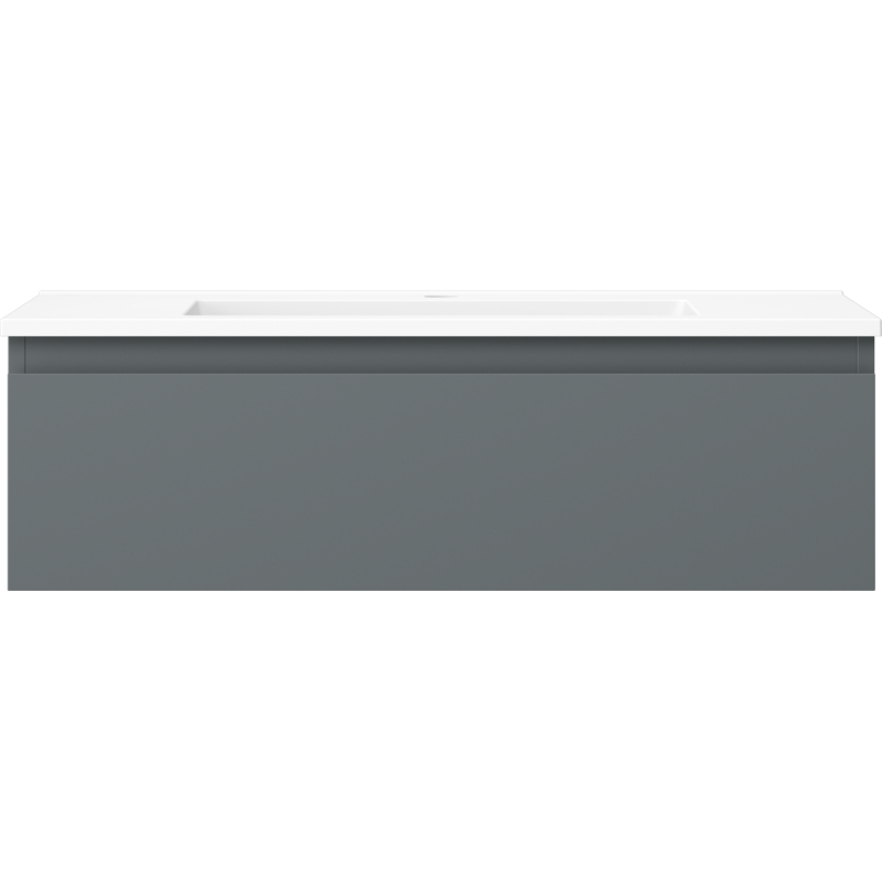 Špecifikácia produktu: Rozmery skrinky: Šírka: 80 cm Hĺbka: 46 cm Výška: 23,5 cm Farba korpusu: Matný grafit Materiál korpusu: Lakovaná doska Farba čela: Matný grafit Materiál čela: Lakovaná MDF doska Štruktúra čela: Hladká Počet zásuviek: Povrch odolný voči UV žiareniu Rozmery umývadla: Šírka: 81 cm Hĺbka: 46,5 cm Výška: 16,5 cm Farba umývadla: Matná biela Materiál umývadla: Konglomerát Otvor pre prepad: Áno Otvor pre batériu: Áno Zmontovaný výrobok