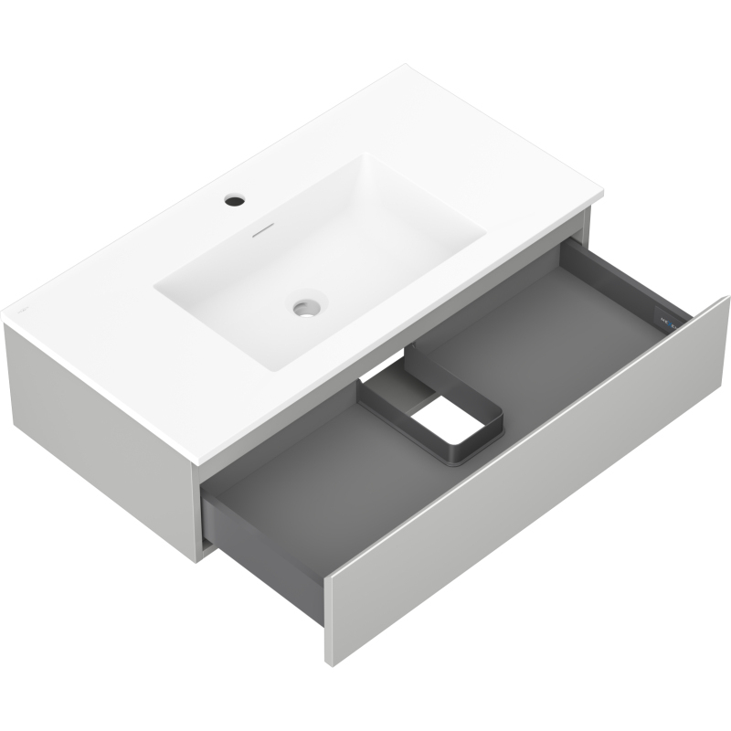 Kúpeľňová skrinka Mexen Orio 90 cm s umývadlom Otis, 1 zásuvka, matná šedá/matná biela - 91A10-09023-1-BF62-W18M01