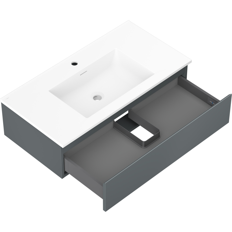 Kúpeľňová skrinka Mexen Orio 90 cm s umývadlom Otis, 1 zásuvka, matný grafit/matná biela - 91A10-09023-1-BF66-W18M01