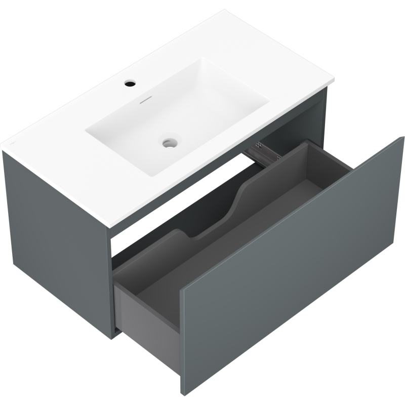 Kúpeľňová skrinka Mexen Orio 90 cm s umývadlom Otis, 1 zásuvka, matný grafit/matná biela - 91A10-09047-1-BF66-W18M01