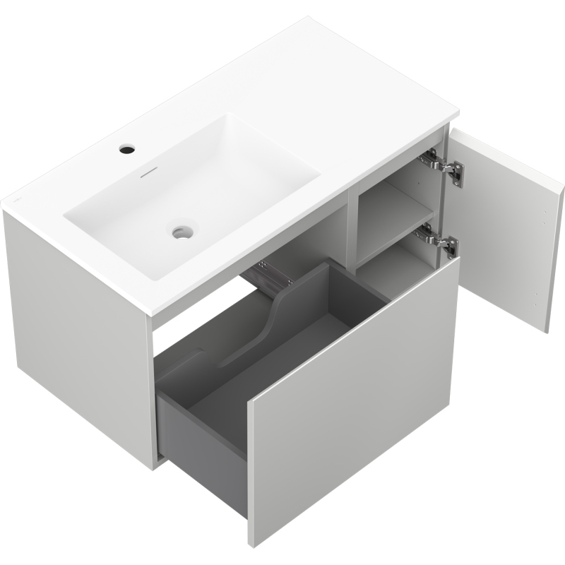Kúpeľňová skrinka Mexen Orio 90 cm s umývadlom Otis vľavo, 1S, 1D, matná šedá/matná biela - 91A13-09047-3-BBFF62-W18L01