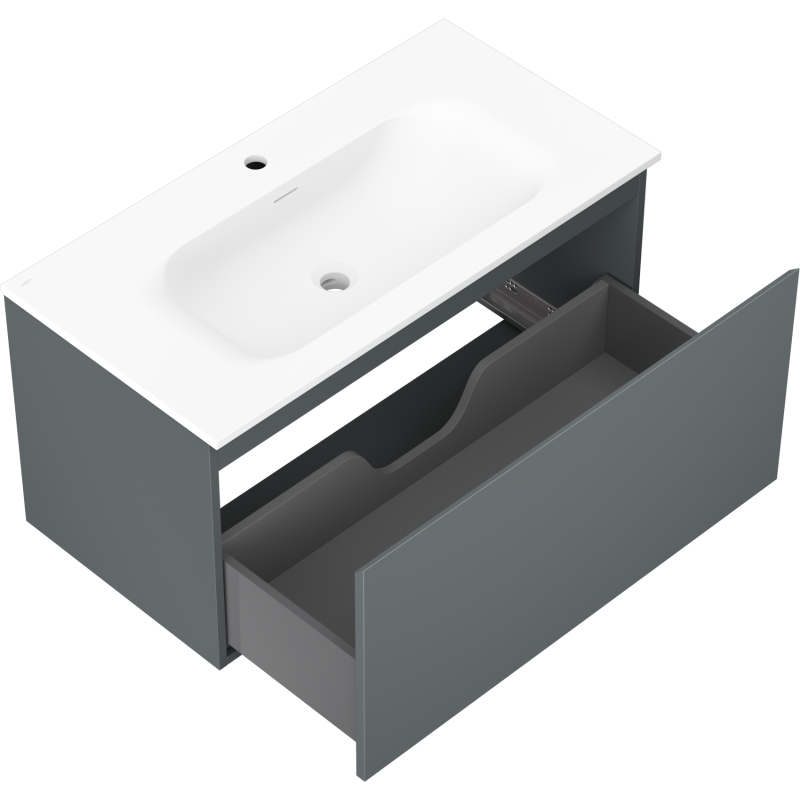 Kúpeľňová skrinka Mexen Orio 90 cm s umývadlom Vela, 1 zásuvka, matný grafit/matná biela - 91A10-09047-1-BF66-W23M01