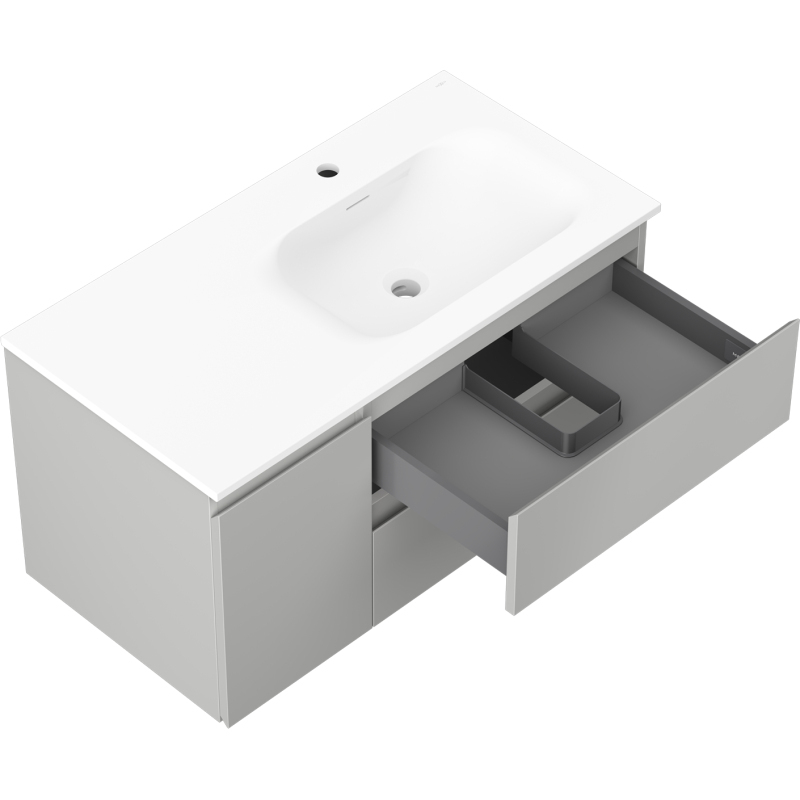 Kúpeľňová skrinka Mexen Orio 90 cm s umývadlom Vela pravá, 2S, 1D, matná šedá/matná biela - 91A13-09047-3-BBFFF62-W23P01