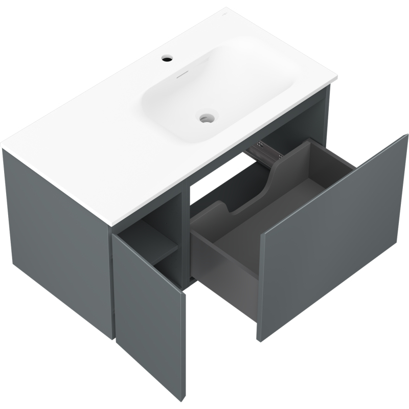 Kúpeľňová skrinka Mexen Orio 90 cm s umývadlom Vela pravé, 1S, 1D, grafit matný/biela matná - 91A13-09047-3-BBFF66-W23P01