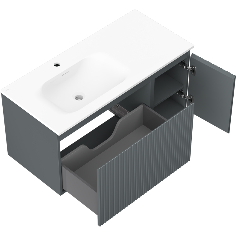 Kúpeľňová skrinka Mexen Rivel 100 cm s ľavým umývadlom Vela, 1S, 1D, drážkovaná, grafit matný/biela matná - 91A23-10047-3-BBFF66-W23L01