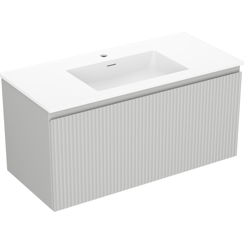 Kúpeľňová skrinka Mexen Rivel 100 cm s umývadlom Otis, 1 zásuvka, drážkovaná, matne šedá/matne biela - 91A20-10047-1-BF62-W18M01