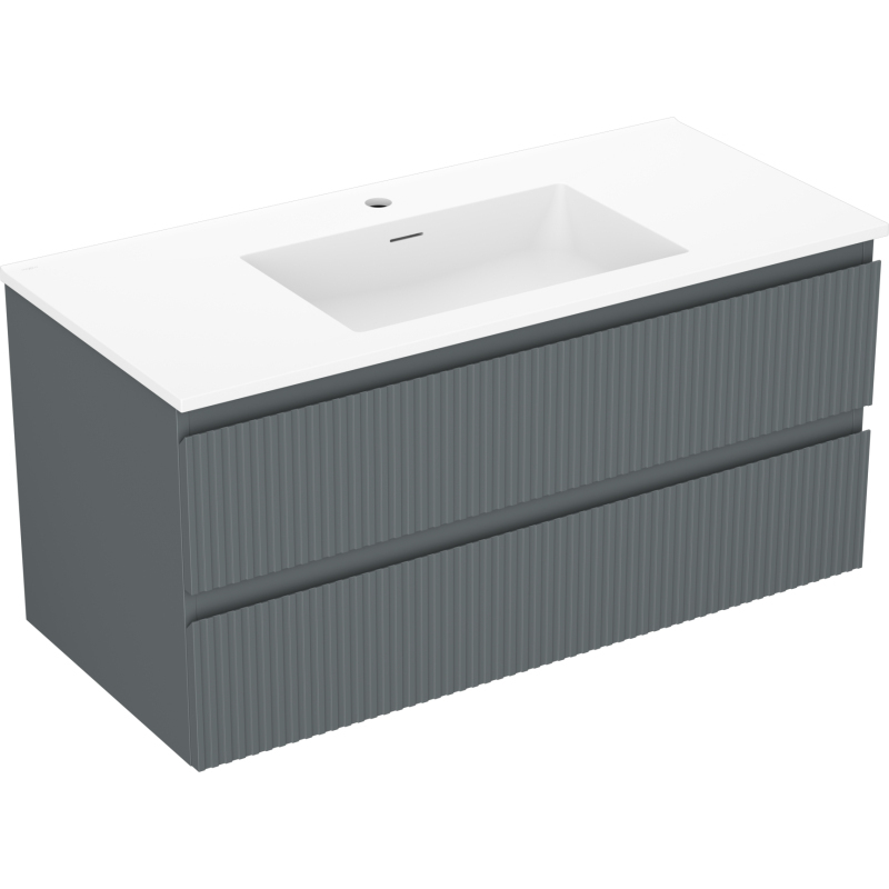 Kúpeľňová skrinka Mexen Rivel 100 cm s umývadlom Otis, 2 zásuvky, drážkovaná, grafit matný/biela matná - 91A20-10047-2-BFF66-W18M0
