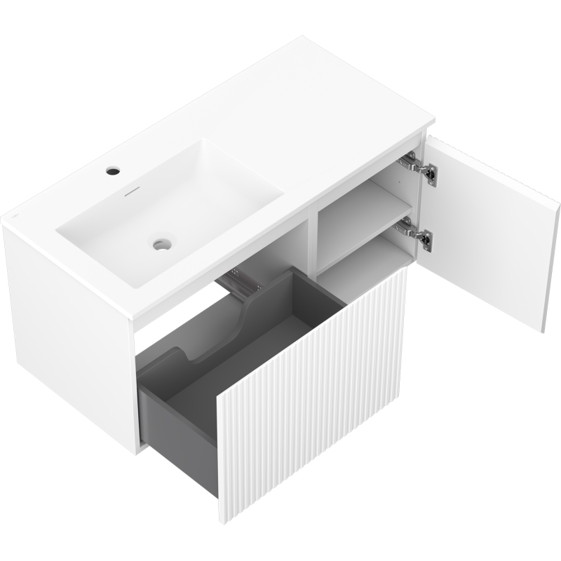 Kúpeľňová skrinka Mexen Rivel 100 cm s umývadlom Otis vľavo, 1S, 1D, drážkovaná, matná biela - 91A23-10047-3-BBFF01-W18L01