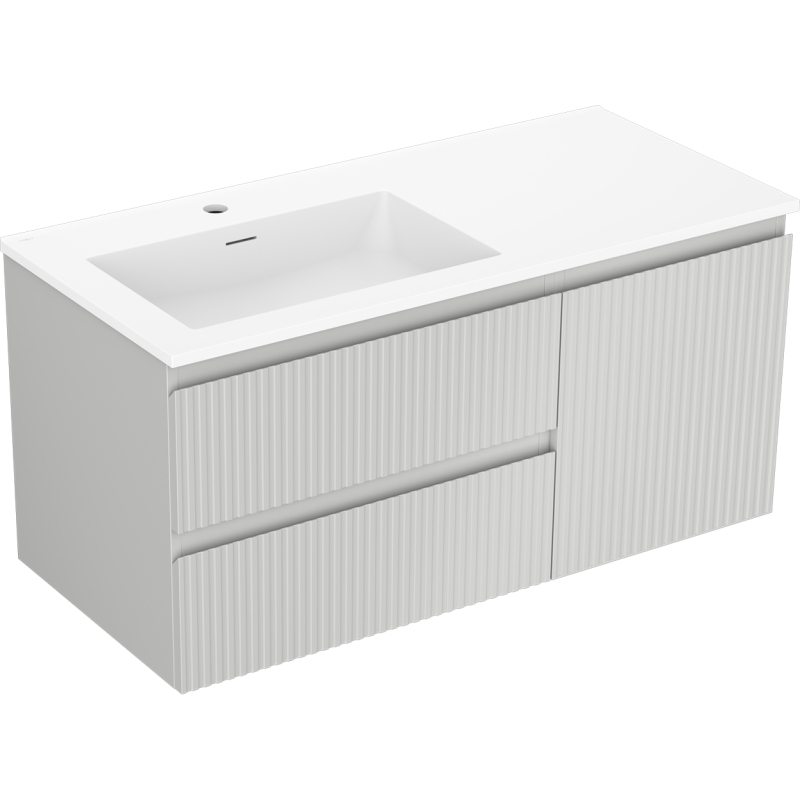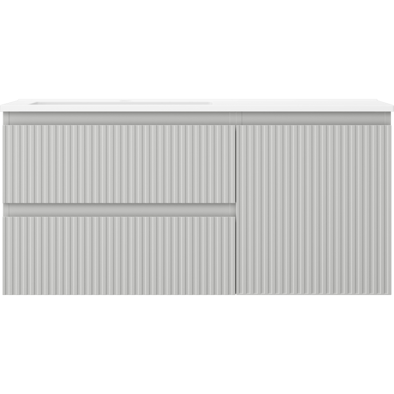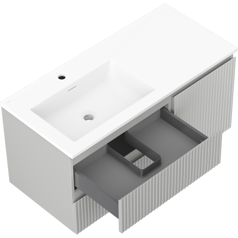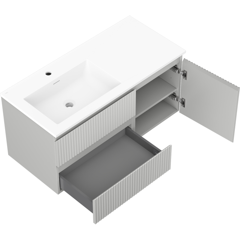 Kúpeľňová skrinka Mexen Rivel 100 cm s umývadlom Otis vľavo, 2S, 1D, drážkovaná, matná šedá/matná biela - 91A23-10047-3-BBFFF62-W18L01