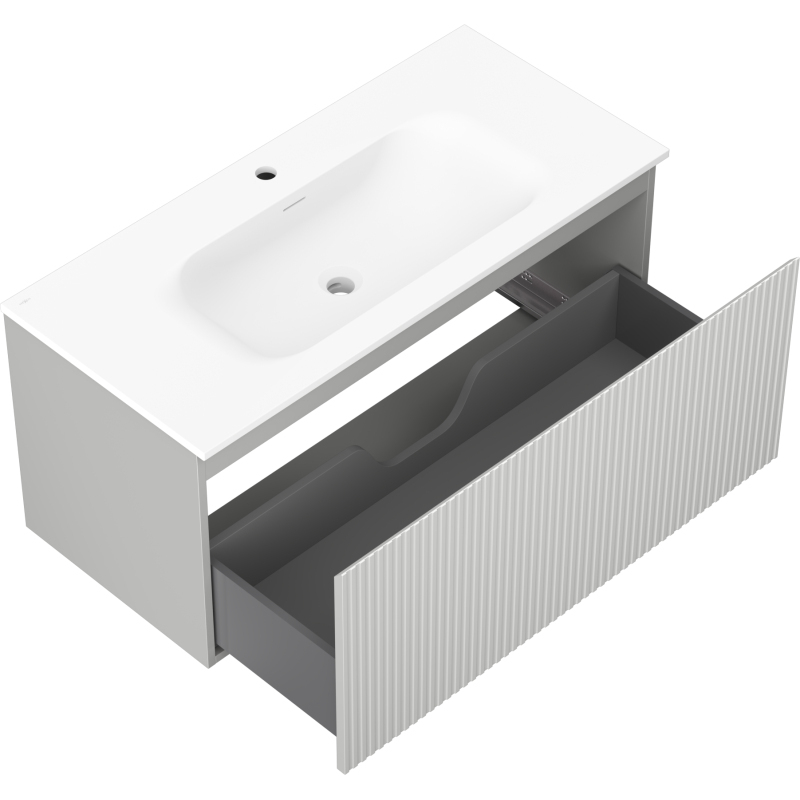 Kúpeľňová skrinka Mexen Rivel 100 cm s umývadlom Vela, 1 zásuvka, drážkovaná, matne šedá/matne biela - 91A20-10047-1-BF62-W23M01