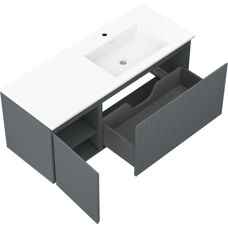 Kúpeľňová skrinka Mexen Rivel 120 cm s umývadlom Otis pravým, 1S, 1D, drážkovaná, grafit/matná biela - 91A23-12047-3-BBFF66-W18P01